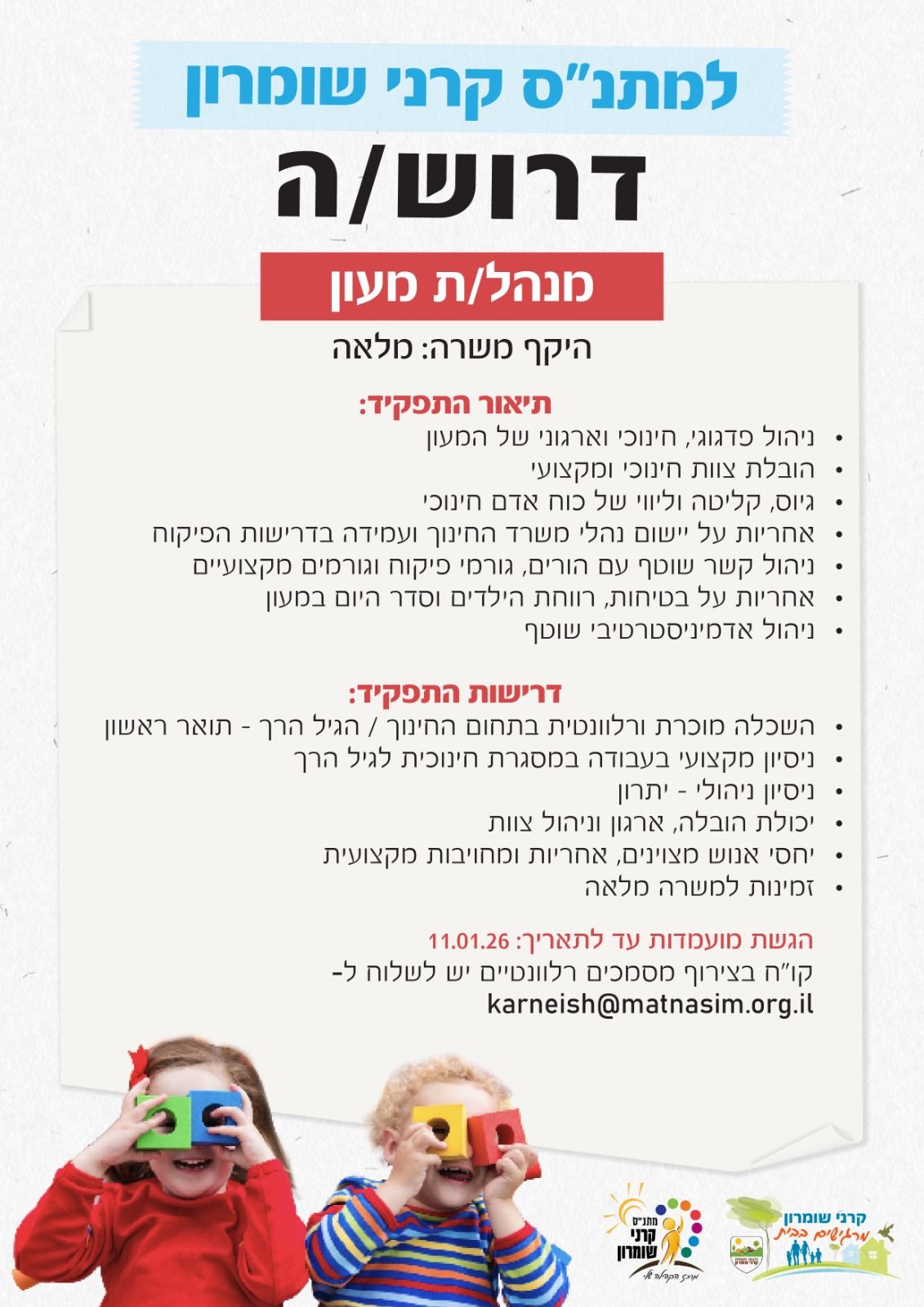 ✅ עבודה משמעותית בסביבה צעירה ודינמית ✅ הדרכה וליווי מקצועי ✅ שעות גמישות ואפשרות להשפיע 50% משרה